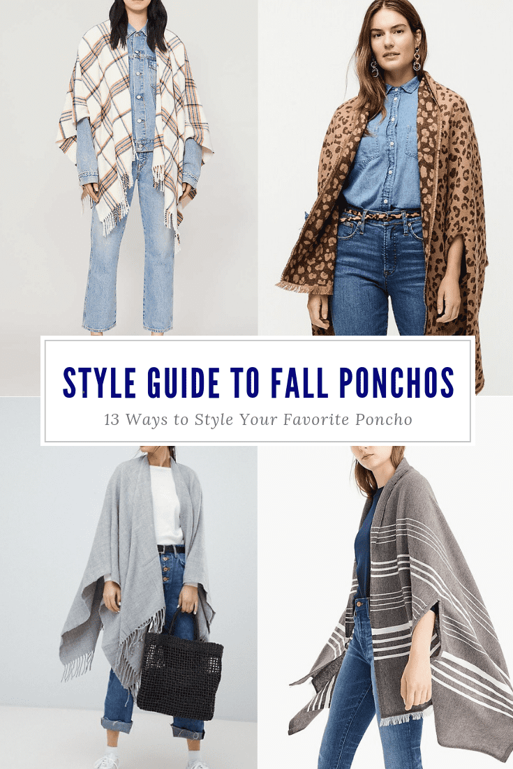 If youβre looking to get dressed in a speedy manor, layering your poncho over a classic pair of denim will do the trick. Stick to skinny, straight or bootcut leg openings and skip pants that are baggy.