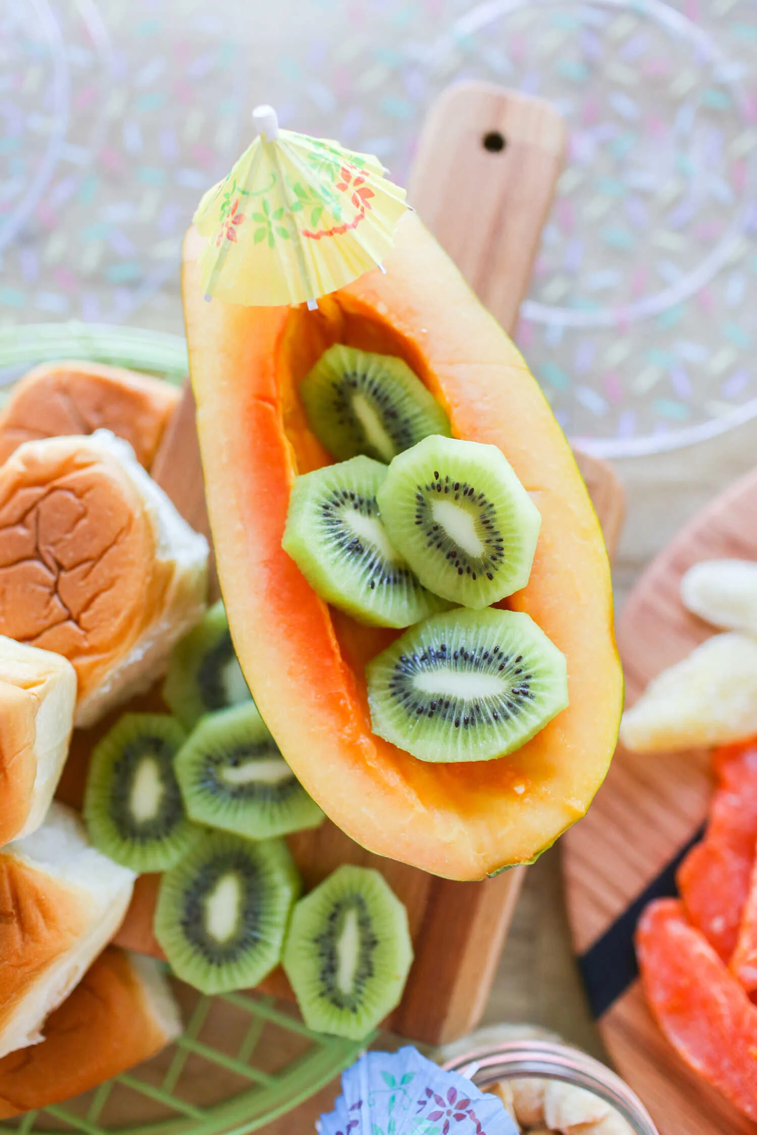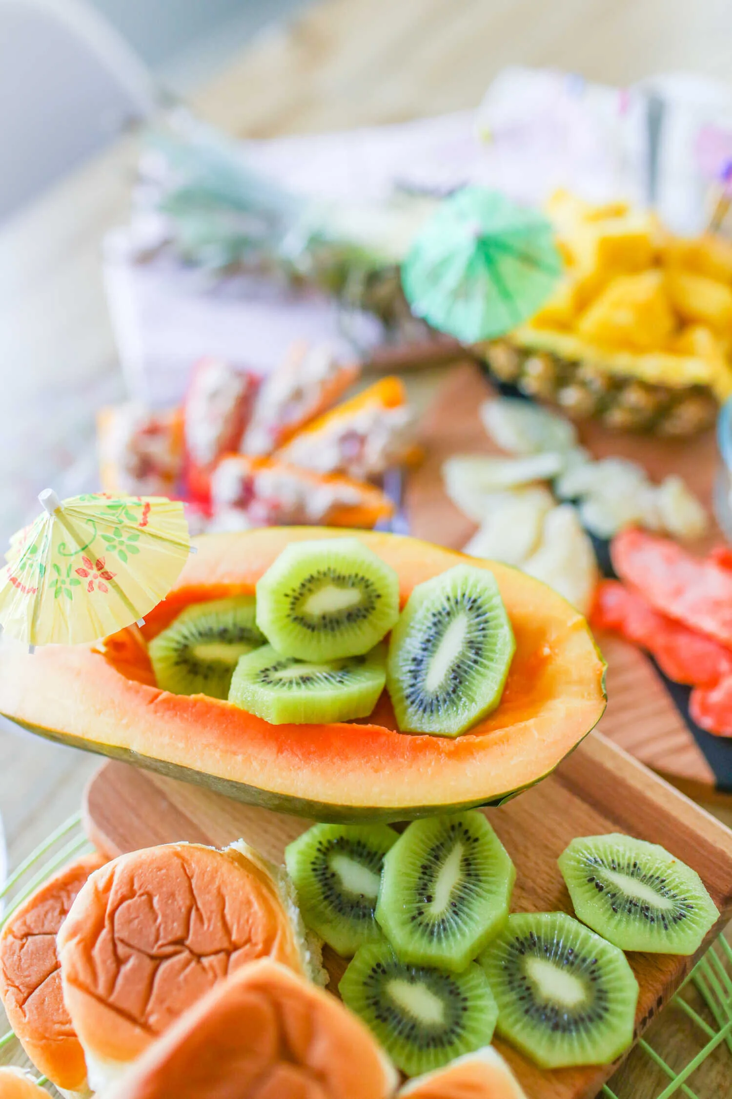 There are certain fruits that grown in tropic landscapes and we often associate them with good times on a white sandy beach. Incorporating these tropical fruits into your menu is crucial for those island vibes. These fresh fruits will also bring a lot of color and visual appeal to your table. The more the merrier for a rainbow display!