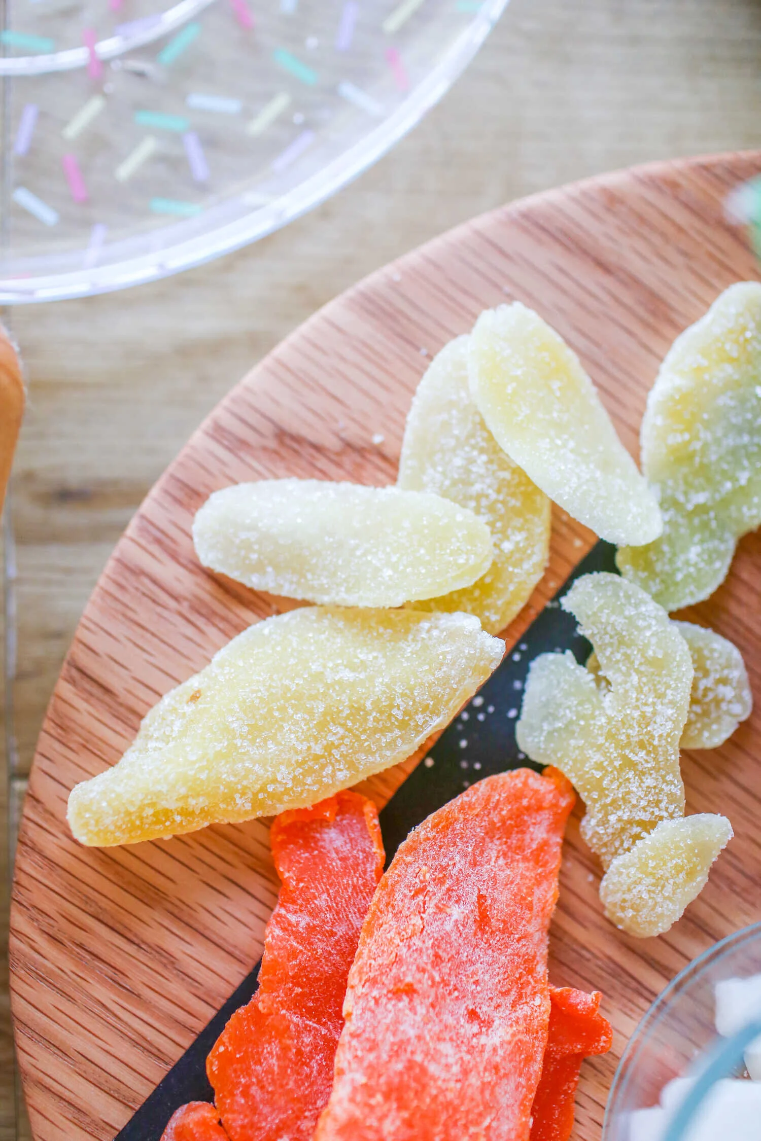 Dried fruits are often forgotten about but they’re easy to keep on hand because they last longer than fresh fruit. When the fruit is dried out it often develops a more tart flavor and chewy texture. The key to an excellent grazing board is to provide your guests with all kinds of new food options to discover.