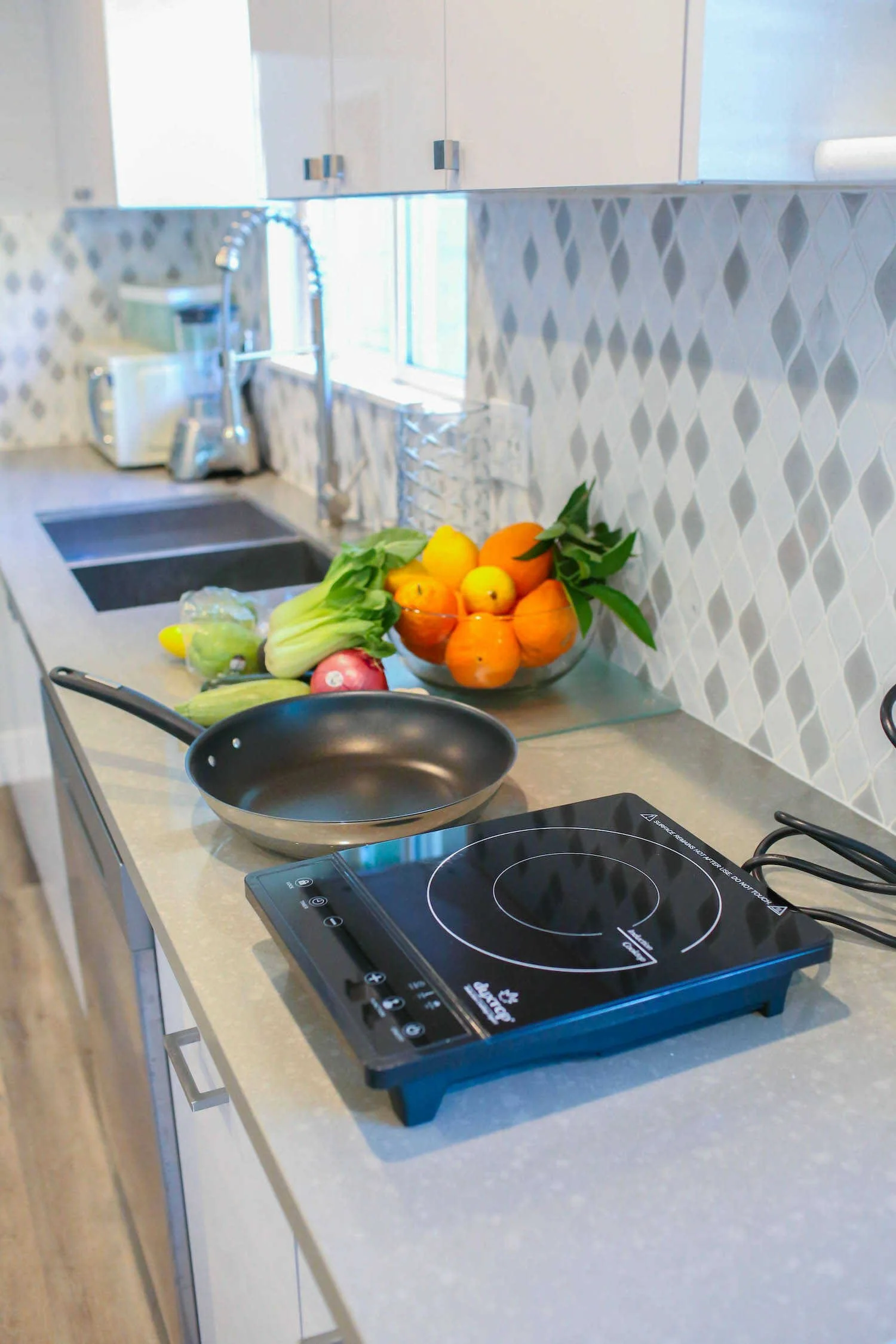 When buying a new device, look for the Energy Star rating and think about your family's needs so that you don't overspend on a device that is larger or more powerful than you truly need. You can also look into new technology such as induction cooktops which are so sleek and fast, not to mention eco-friendly because it uses 10% less energy than a smooth-top electric range.