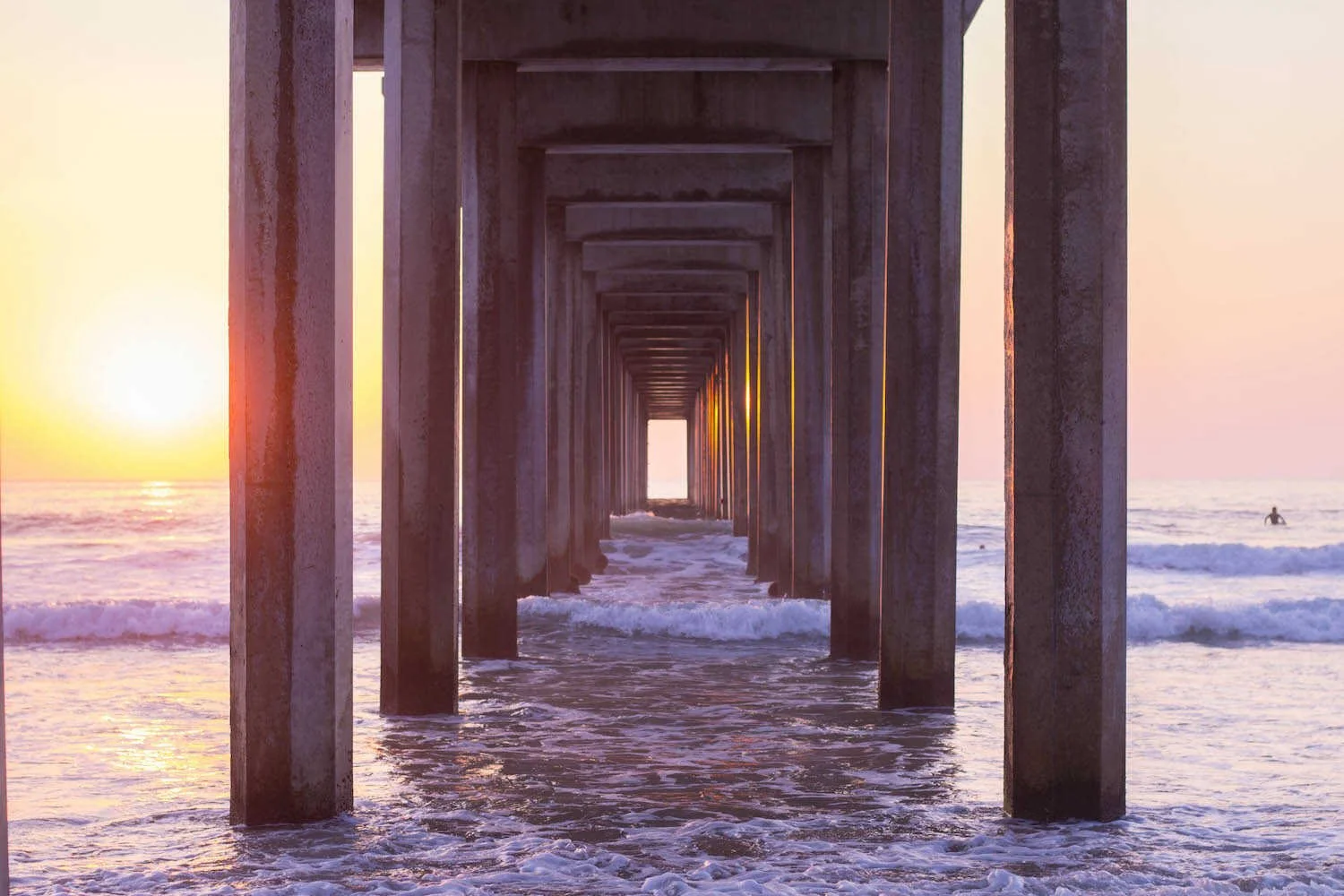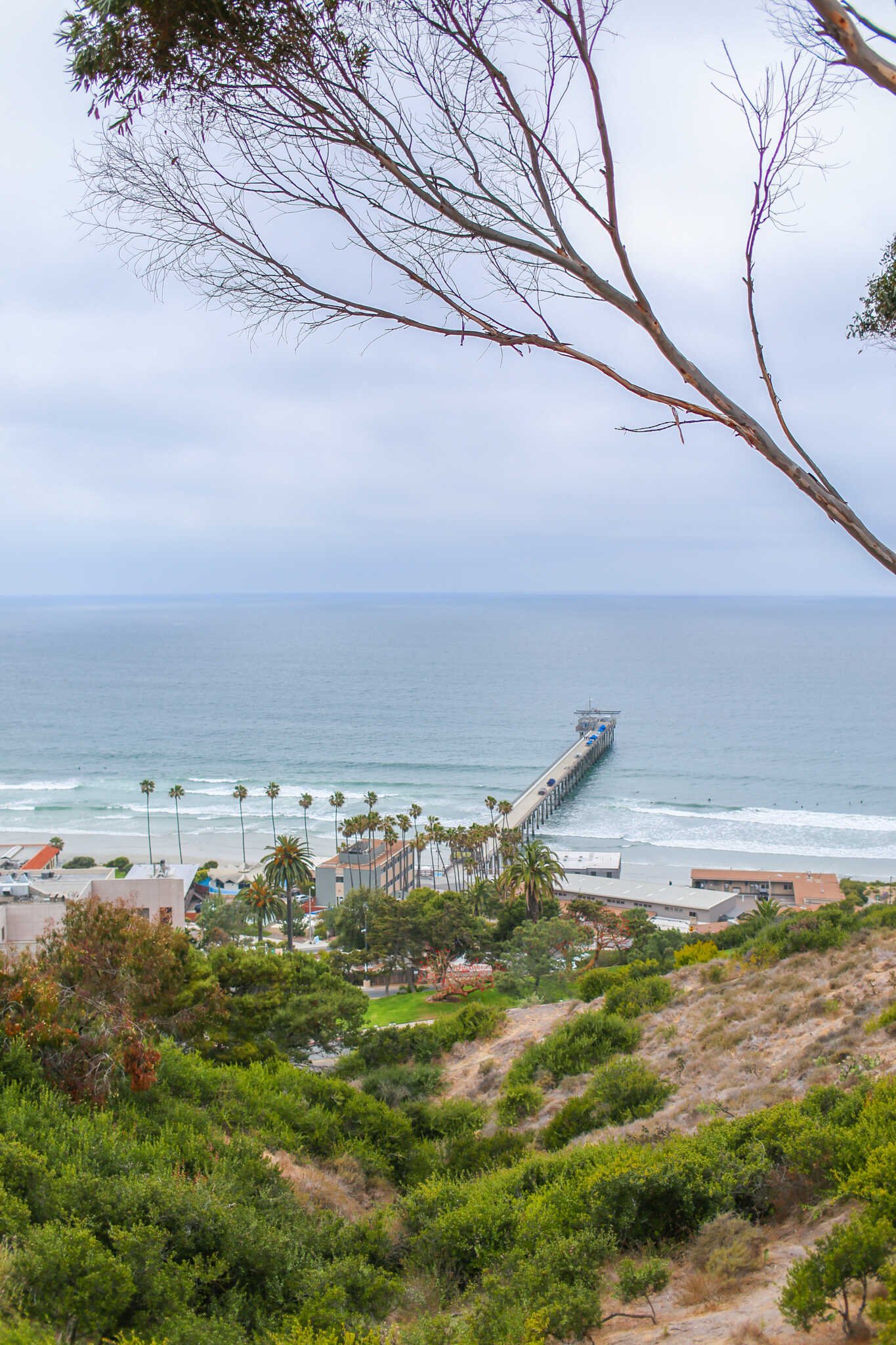 Scripps Pier Beach is a bit of a hidden gem because itβs less touristy. This beach sits under the grand Scripps Pier which creates a lot of shade and atmosphere. This beach tends to be a bit calmer, and during the week its mostly just surfers catching waves. This is also a popular place for San Diego themed Instagram photos because the pier really captures a vibe.