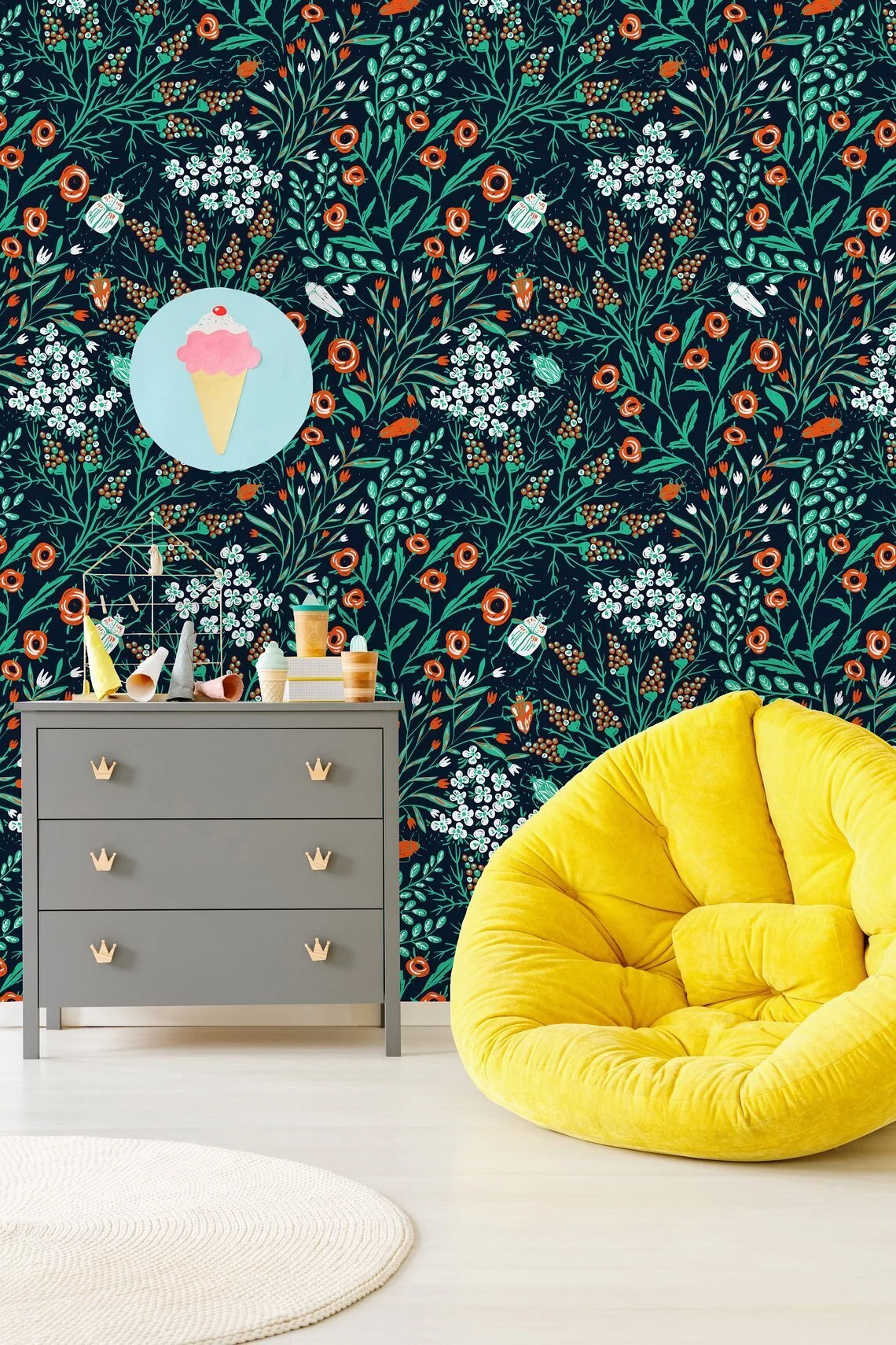 As bright and cheerful as California itself, this quaint floral room delights with a pop of yellow color.