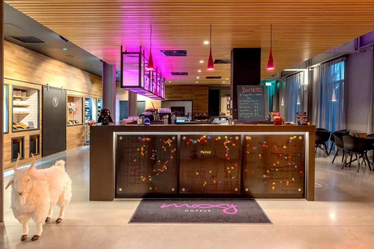 Often times airport hotels tend to be a bit on the drab side with just the bare necessities. The Moxy Hotel is very close to the London City Airport and it is fully designed in fun and whimsical modern decor.