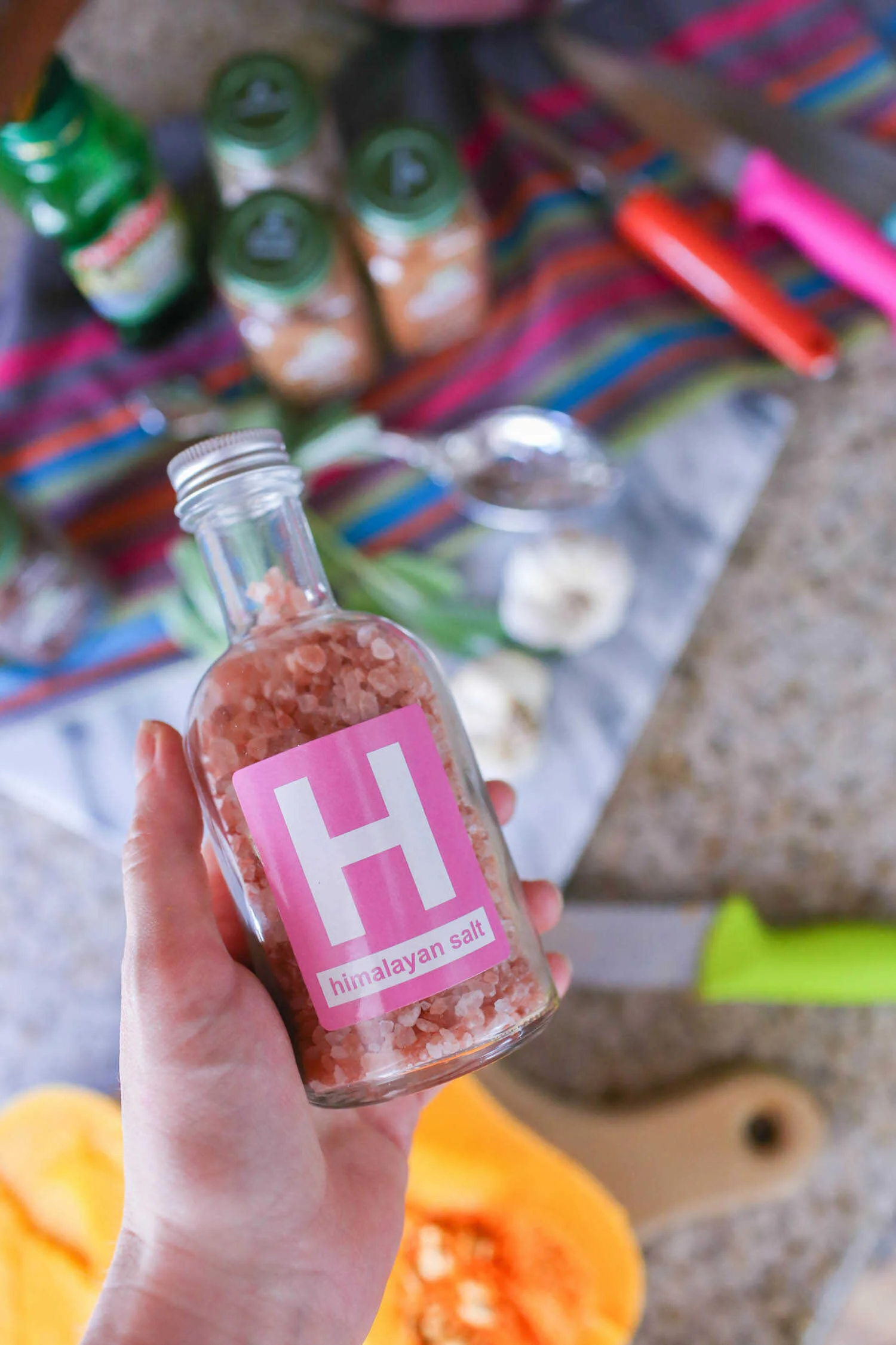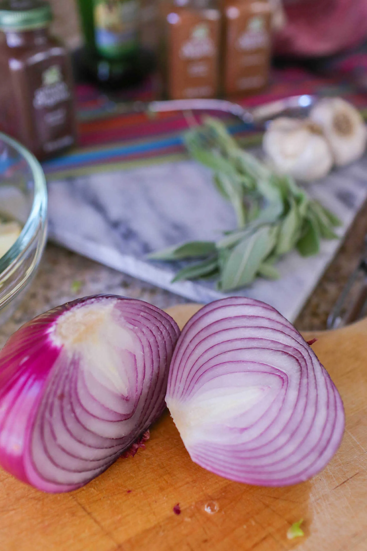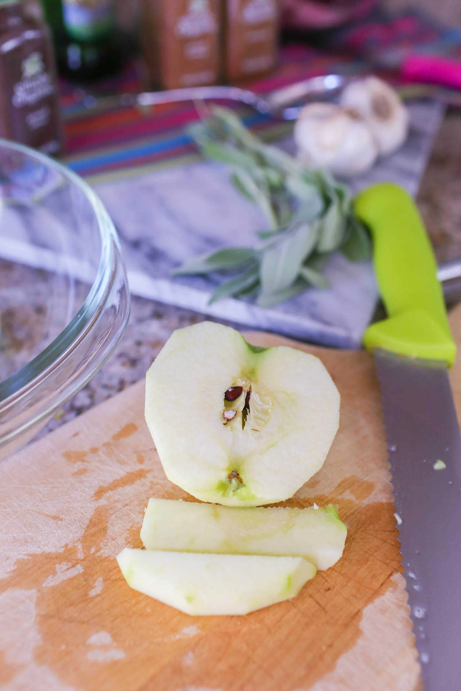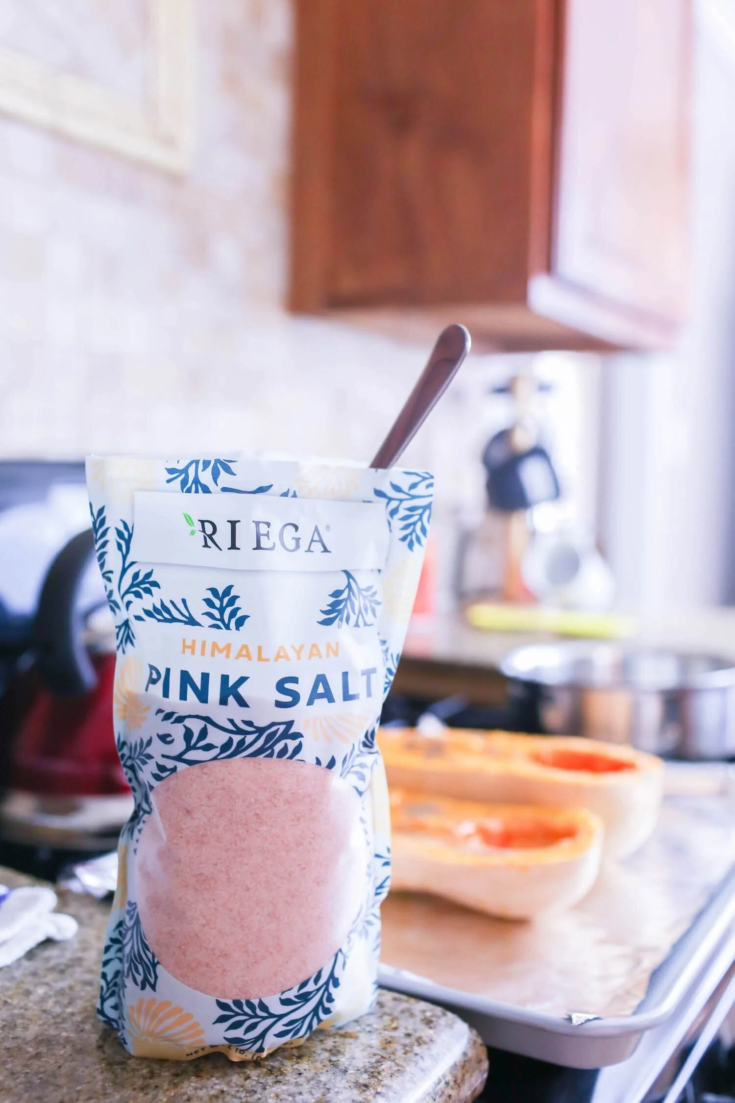 Cut the butternut squash in half the long way (see images in blog post). Scoop out all the seeds.