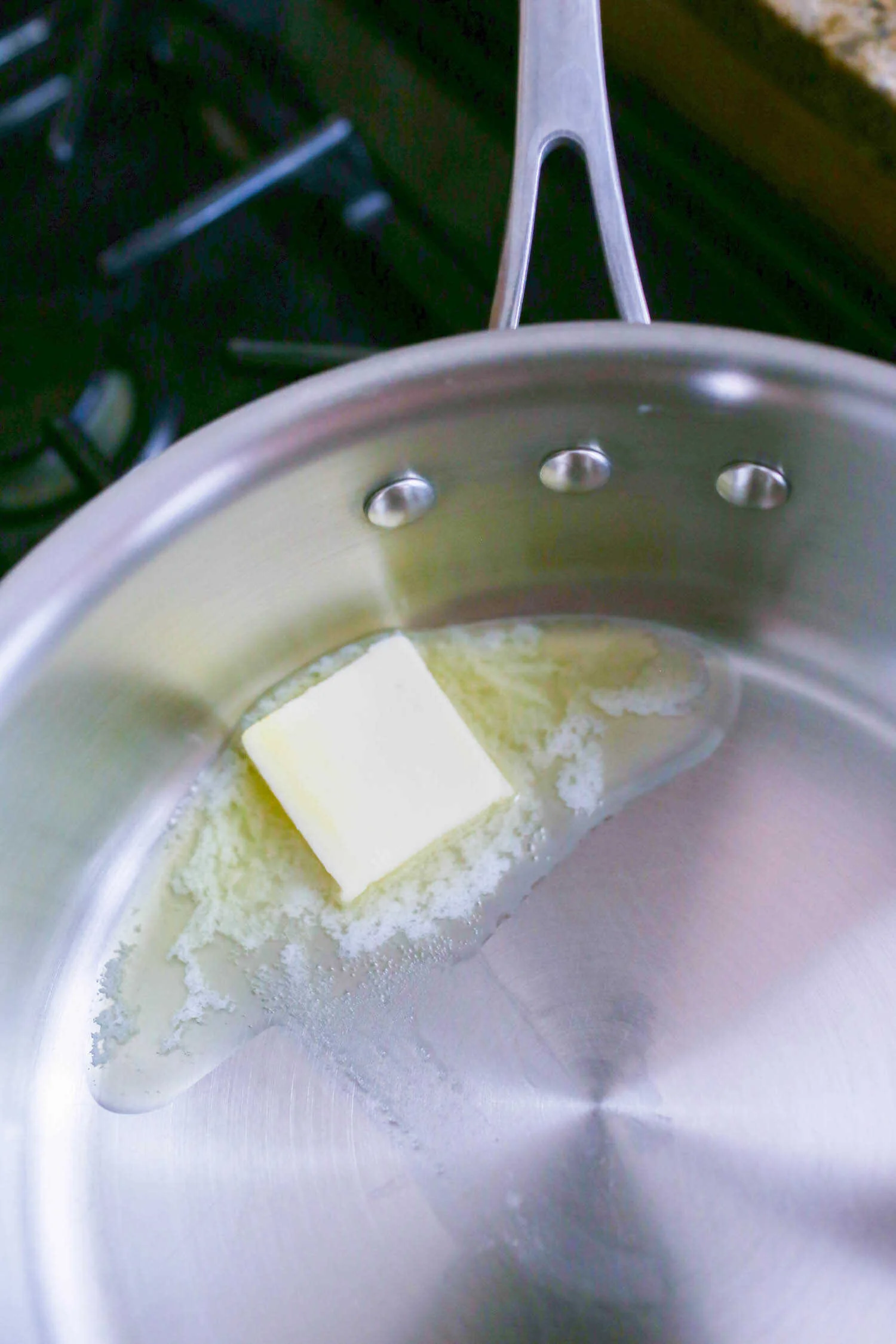 Place the squash cut-side-up on the lined baking sheet. Brush with 1 tablespoon melted butter, and then season very generously with salt and pepper.