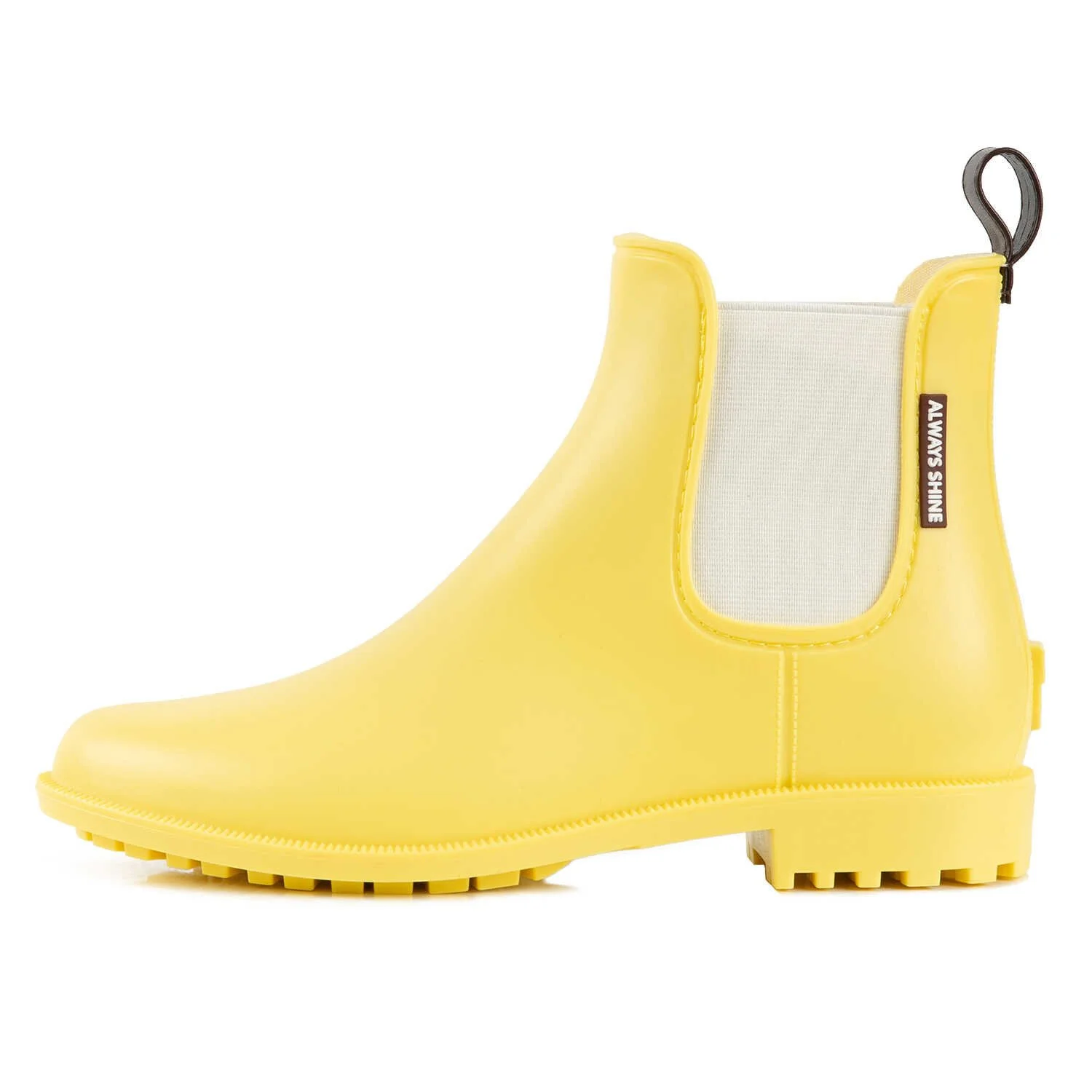 If youβre looking for bright and cheerful rain boots, but only want to spend less than $50, then Planone is perfect for you. They are sold on Amazon and Walmart and come in the perfect shades of sunshine yellow, blush pink, neon blue and more. I own three pairs of these budget-friendly boots and they fit true to size and are comfortable to wear.