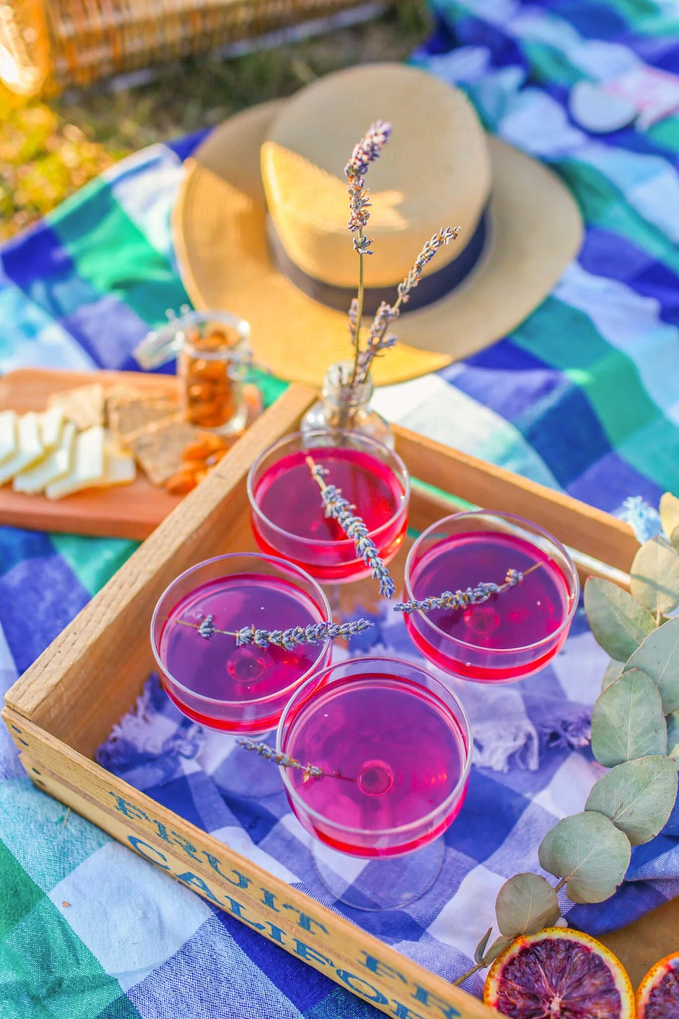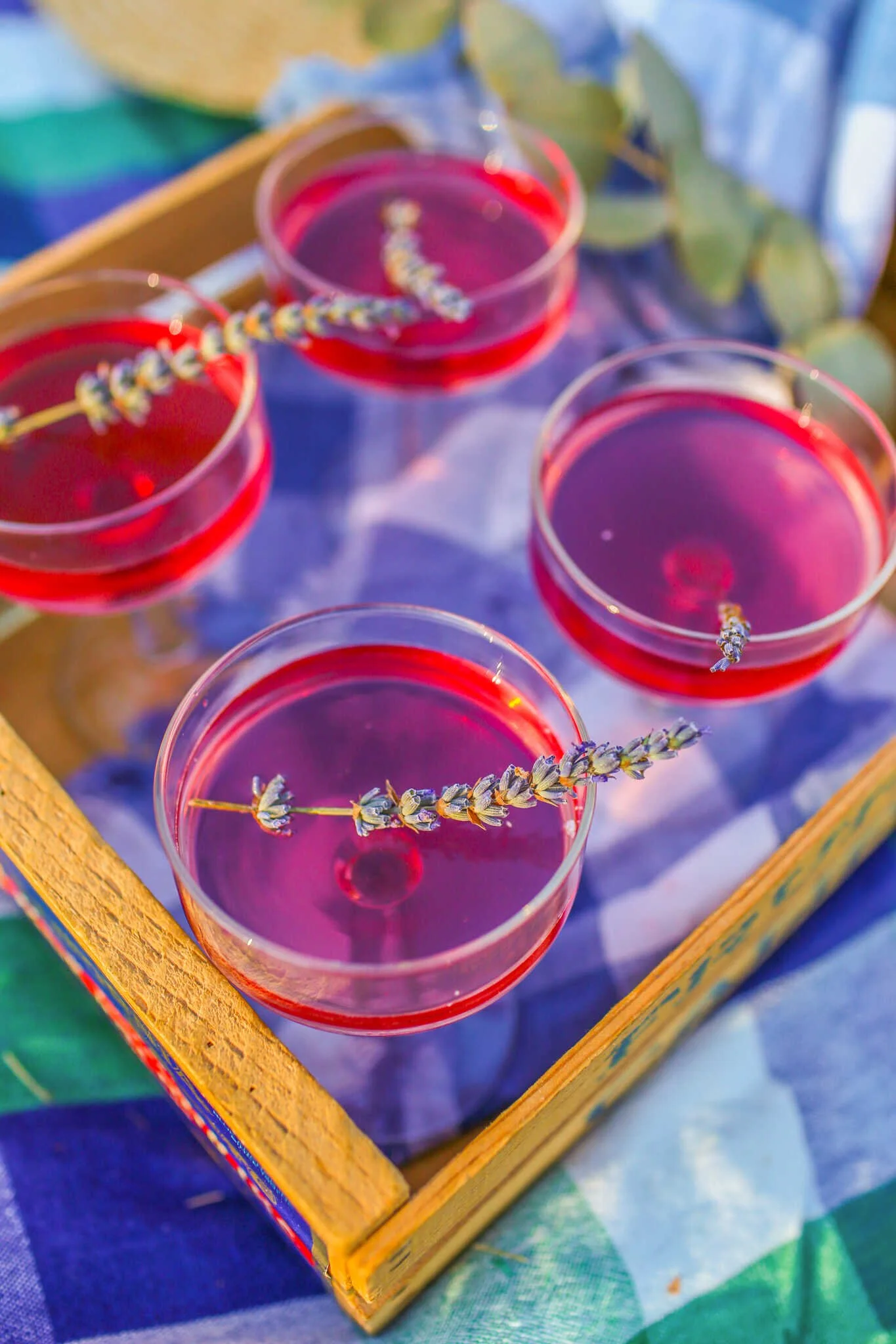 This light and aromatic cocktail recipe is a delight for the senses. The blood orange adds a sweet and tart zing, while the lavender and vanilla are fresh and botanical. For the for the piest de resistance, we used fresh lavender that cut ourselves on a California lavender farm.