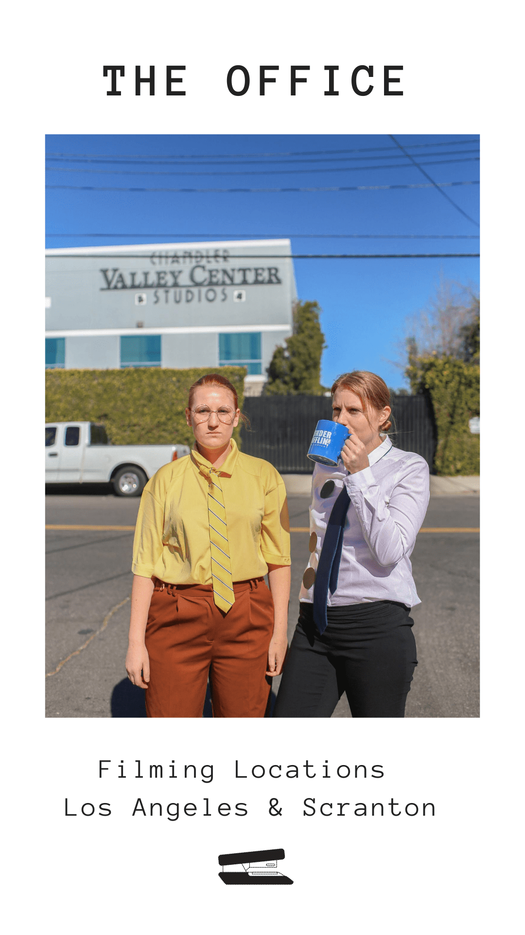 If you havenβt guessed it by now, I am a huge fan of the TV show The Office - as evidenced by this massive guide youβre about to read. My friends and I decided to completely geek out on a trip to Los Angeles and dress up as our favorite The Office characters while we went on a self-guided tour to many of the filming locations in Southern California. I was dressed as β3-hole-punch Jimβ, Kara was Dwight and Brianna was Kelly.