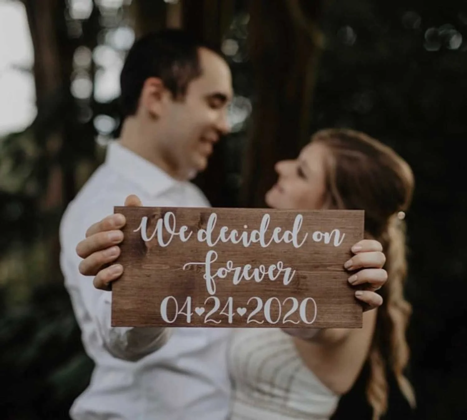Using a custom photo prop sign is an easy and visually appealing way to share your special date with family and friends in photos. You can get it custom made with your own choice of words and fonts.