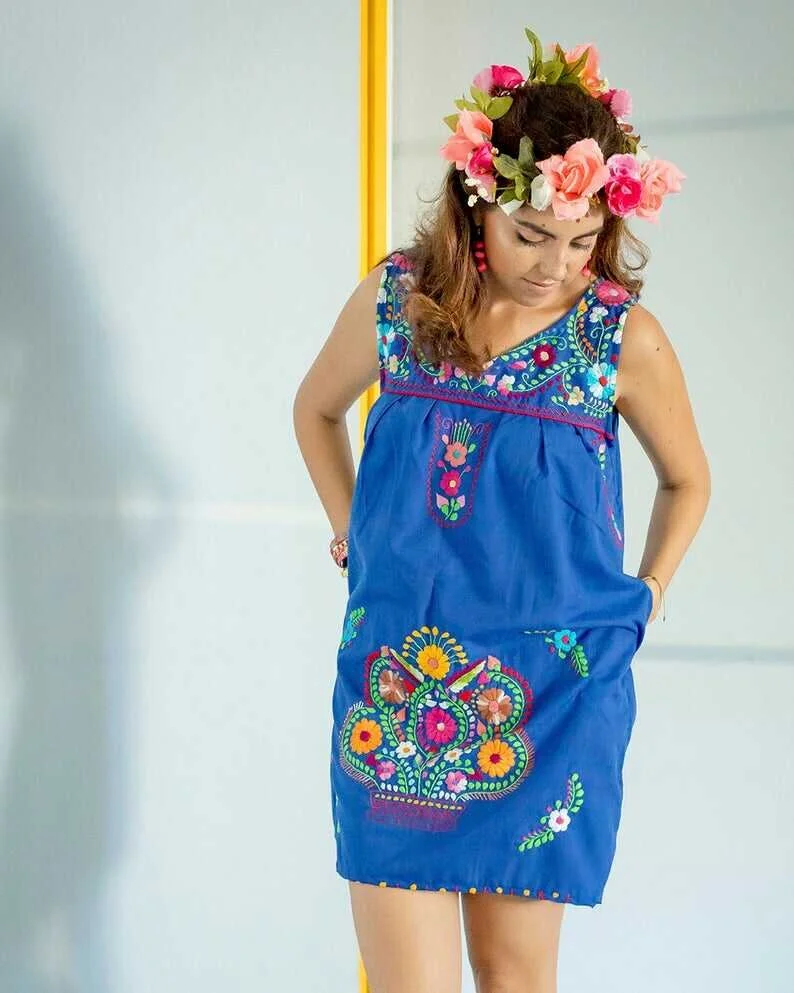 On the online boutique Cielito Lindo, they have a mix of both the traditional Mexican dresses, along with new and modern goods adorned with Mexican embroidery and decals. Youβll find a variety of embroidered Mexican dress styles including off-the-shoulder Campesino, Tehuacan Mexican Floral Dresses, San Antonino Dresses and more.