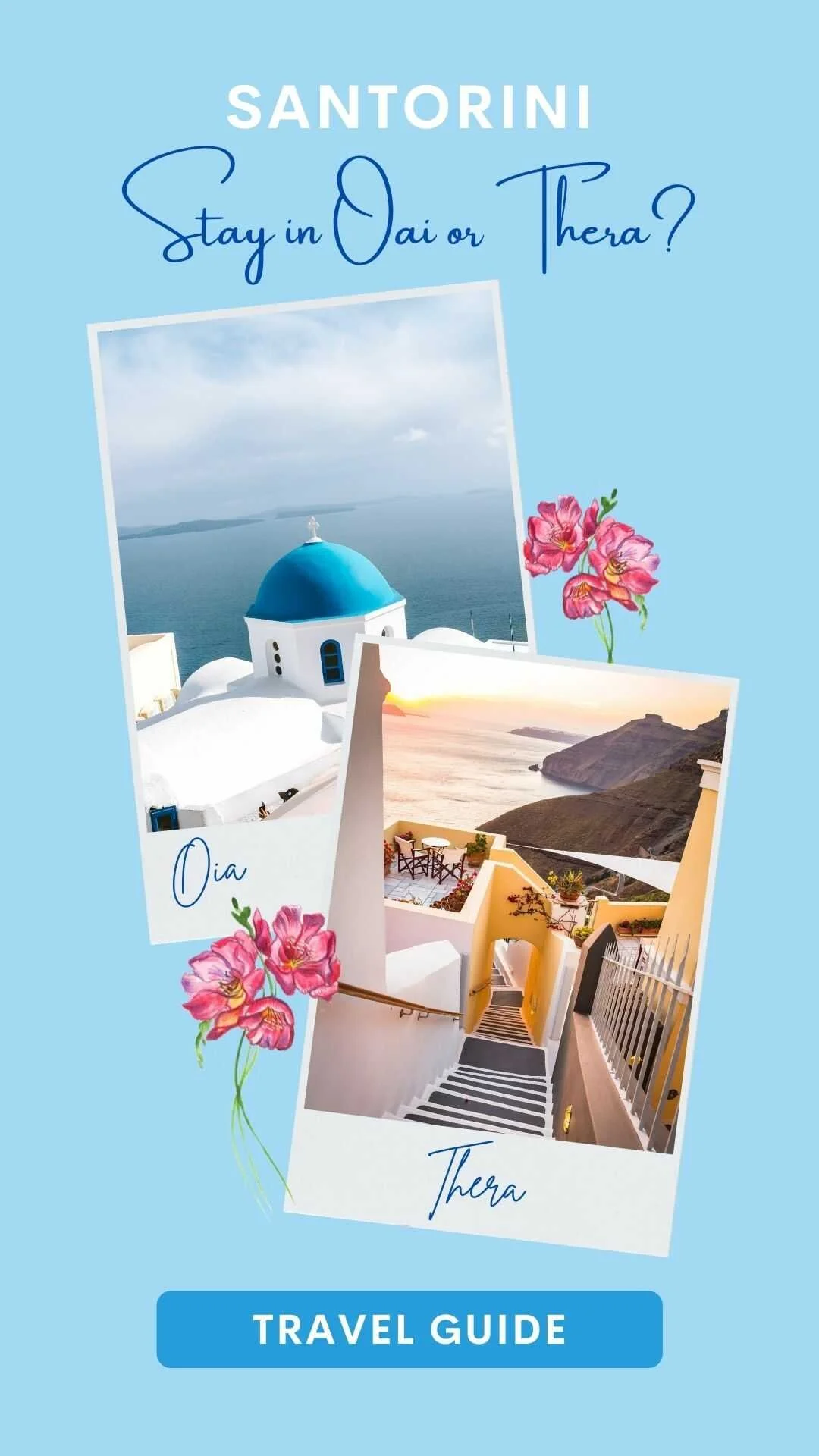The good news is that there’s really no wrong answer on which city to select. The island of Santorini is not very big and it’s less than a 30 minute drive between Thera and Oia. So you can easily plan a day trip to explore the other city.