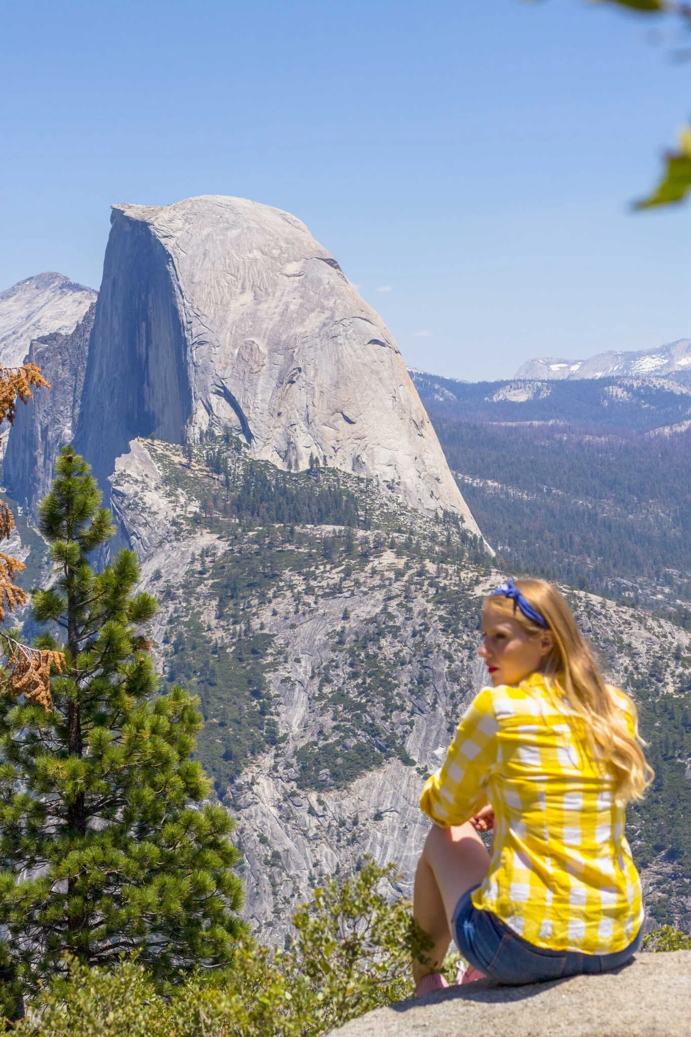 Glacier Point is a lookout spot with stunning views of Yosemite Valley, Half Dome, Yosemite Falls, and Yosemite’s high country (see our photos in this blog post). It is accessible by car from approximately late May through October or November. This was one of our favorite spots from our trip. We pulled out our blanket and had a picnic with our dog Holly.