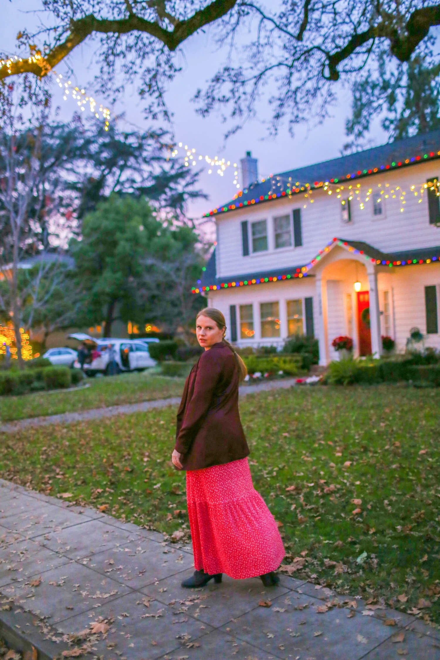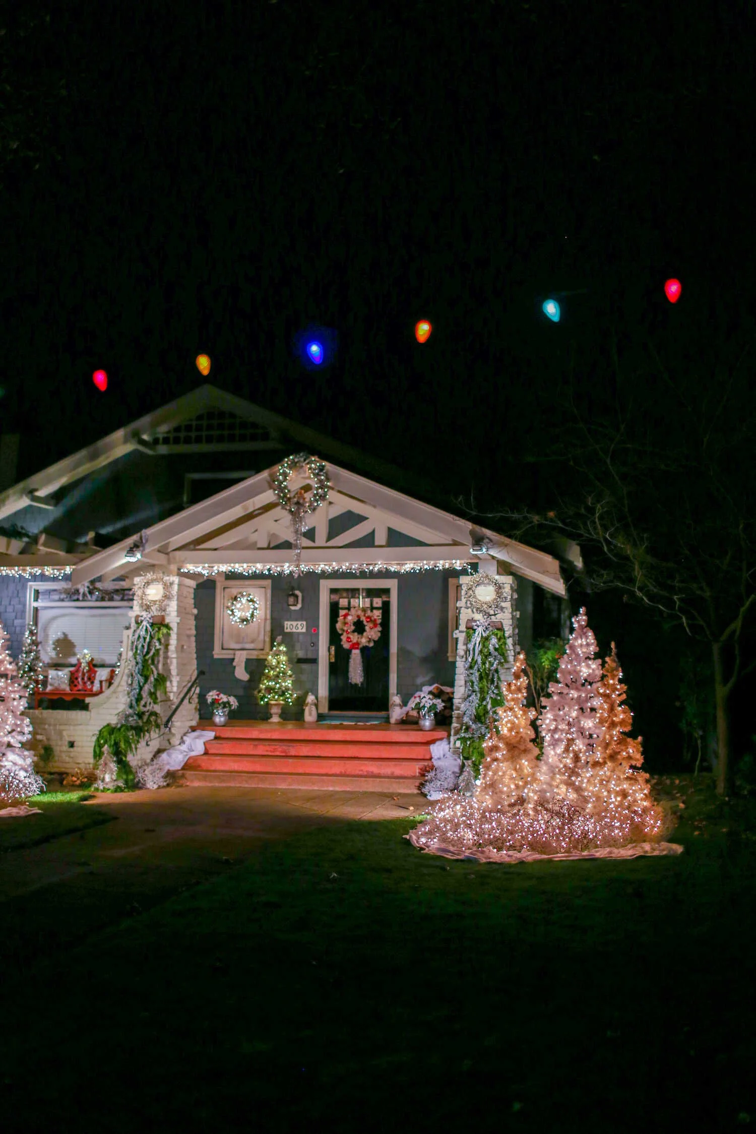 In every city thereβs that one neighborhood that goes above and beyond with the Christmas lights and decor. If youβve ever seen the movie Lady Bird then youβre familiar with the famous βblue houseβ featured in the film. This house is located in the heart of the neighborhood dubbed βthe Fab Fortiesβ (because they are located on the streets numbered in the 40βs and they are totally fabulous mansions).